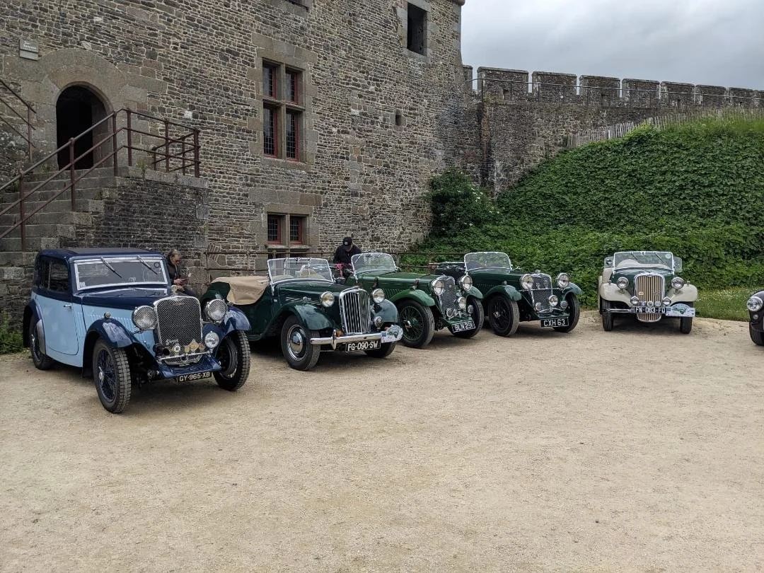 10 Singers were entered in the Fougères Rally in Brittany in May, representing France, Belgium, Germany and the UK. It is a touring rally over 4 days, limited to 150 pre 1970 cars and this year Singer, together with Alvis, were the marques of honour. It certainly lived up to expectations - good fun with excellent routes, varied cars and good food.